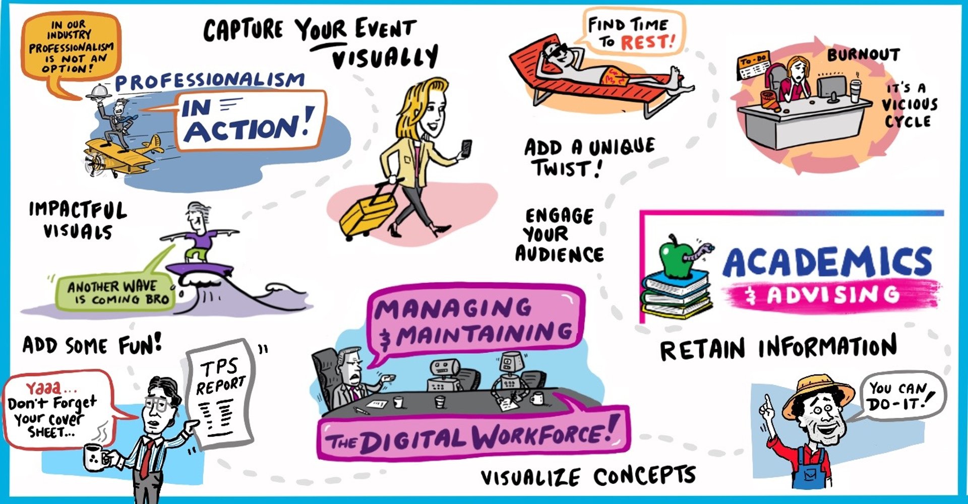 Visual notes that clarify complex ideas and keep your audience hooked.